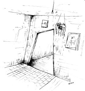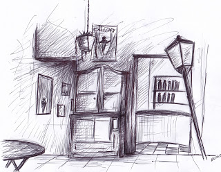 Sala 3 Caligari Café. Boceto: Inés M. Michel, Dibujo final: David A. Becerra
