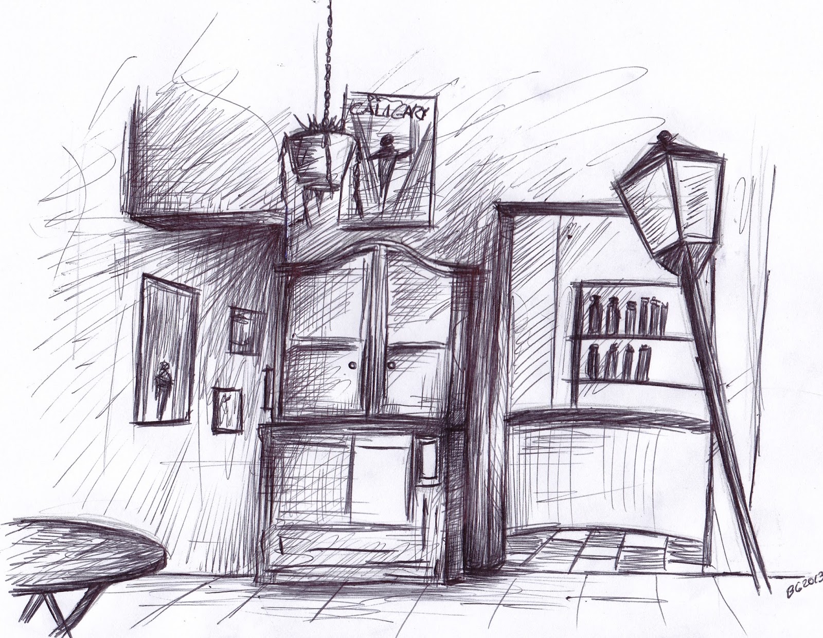 Sala 2 Caligari Café. Boceto: Inés M. Michel, Dibujo final: David A. Becerra