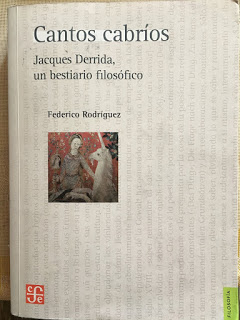 Quien me puso en la necesidad, ya inaplazable, de ponerme a la tarea de hacer el inventario del singular bestiario del maestro del eterno retorno de lo mismo, fue Federico Rodríguez (tarea de la que ya había tenido ciertas sospechas), con su formidable libro Cantos cabríos. Jacques Derrida, un bestiario filosófico (Fondo de Cultura Económica, Chile, 2015). Texto en el que el filósofo chileno nos presenta, de manera por demás problemática, la cuestión de lo animal en la filosofía deconstructivista del también filósofo franco/argelino, ya fallecido (en 2004). Ello mediante 7 cantos (del carnero, del elefante, del erizo, del perro, de la serpiente, de la vaca y de la zorra).