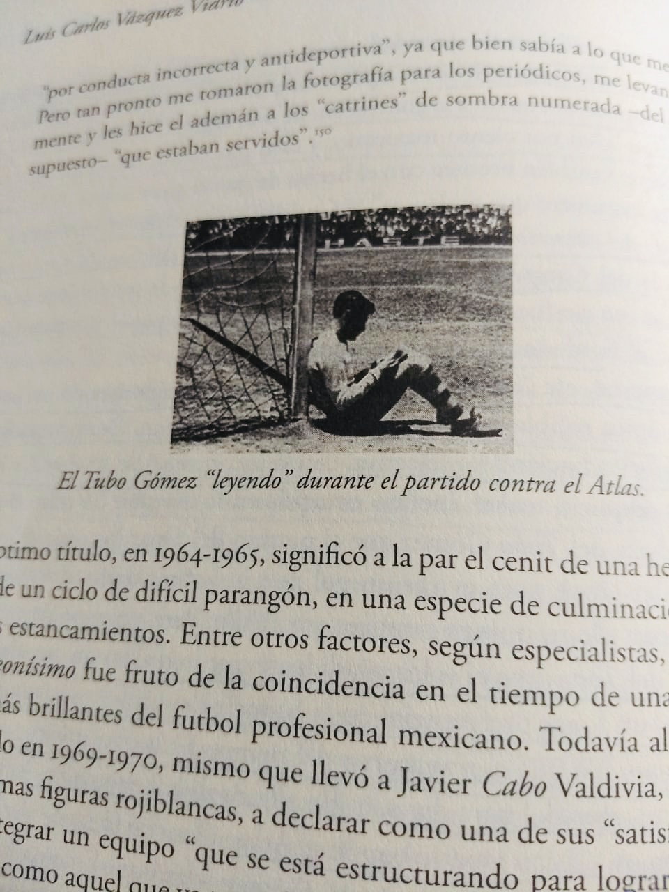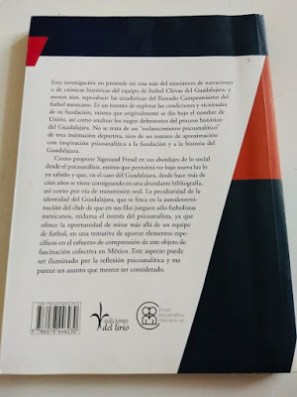 Algo en lo que ya no ahonda Luis Carlos Vázquez Vidrio, pero sí alcanza a decir algunas cosas, sobre todo en el último capítulo de ese formidable libro, que tiene su origen en la tesis de Maestría que presentó, con la peculiaridad de ofrecernos una muy inteligente lectura del fenómeno de las chivas; utilizando el psicoanálisis como una herramienta hermenéutica para la mejor comprensión de tan abigarrada historia deportiva que va más allá de lo meramente futbolístico.
