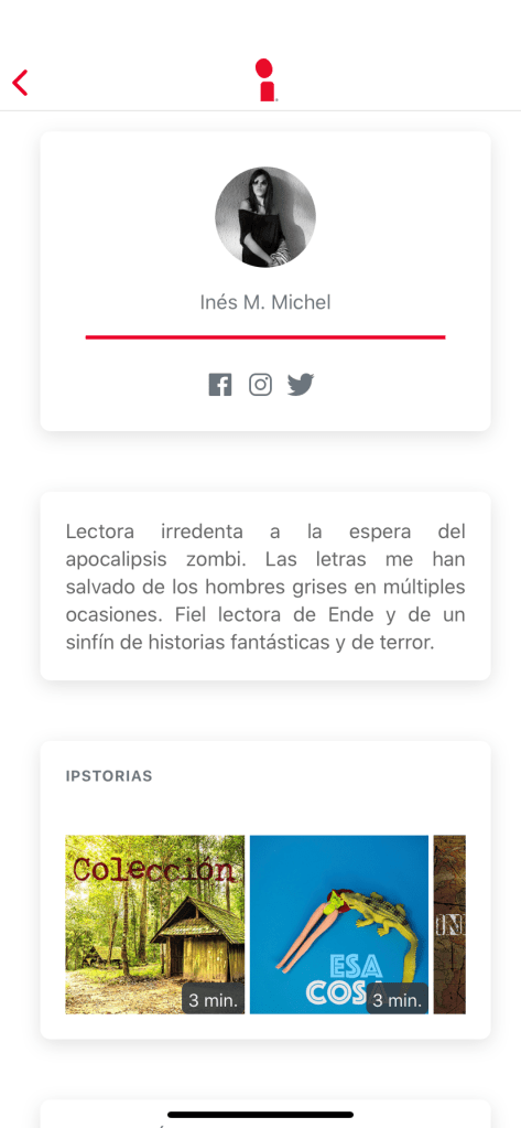 La aplicación les dará acceso a miles de historias originales en dos formatos: texto y audio. ¡Esto me encantó! Además de poder leer nuestro trabajo, también pueden escucharlo en voz de actores y actrices que narran cada ipstoria. Para conocer más pueden navegar por las recomendaciones del día y hacer clic en el material que les guste, cada uno cuenta con un teaser que pueden escuchar a manera de sinopsis y una carátula diseñada por el equipo de ipstori que presenta los textos y da pistas sobre la trama.