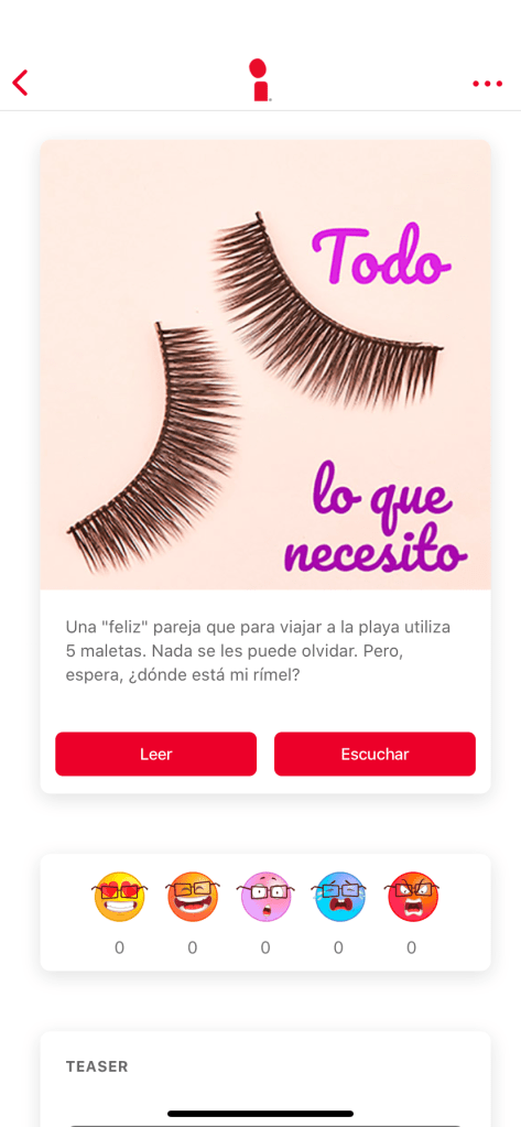 Al final de cada lectura o escucha tienen la oportunidad de reaccionar a la historia, con una serie de emoticones entre los que pueden elegir. Una vez que hayan probado la aplicación, encontrarán diferentes esquemas de suscripción para seguir leyendo todo el contenido que les interese.