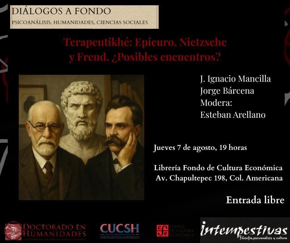 Imagen de portada: Diálogos a fondo: Psicoanálisis, humanidades, ciencias sociales. Terapeutikhé: Epicuro, Nietzsche y Freud. ¿Posibles encuentros? / FCE José Luis Martínez (Foto: Isabel Mancilla).